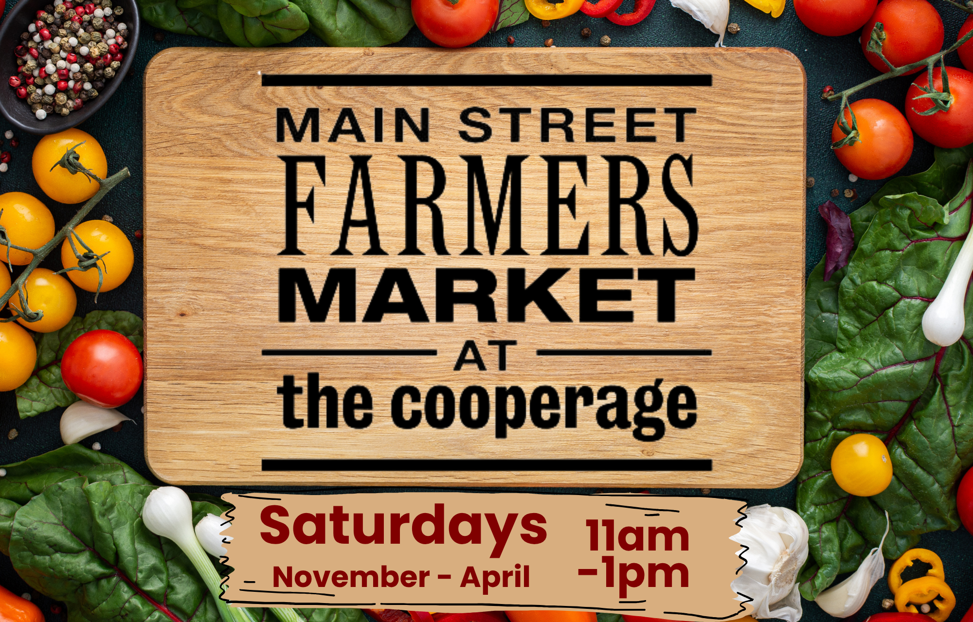 The Main Street Farmers Market is open every Saturday from 11 AM to 1 PM, beginning November 1, 2025 and running until April 25, 2026.