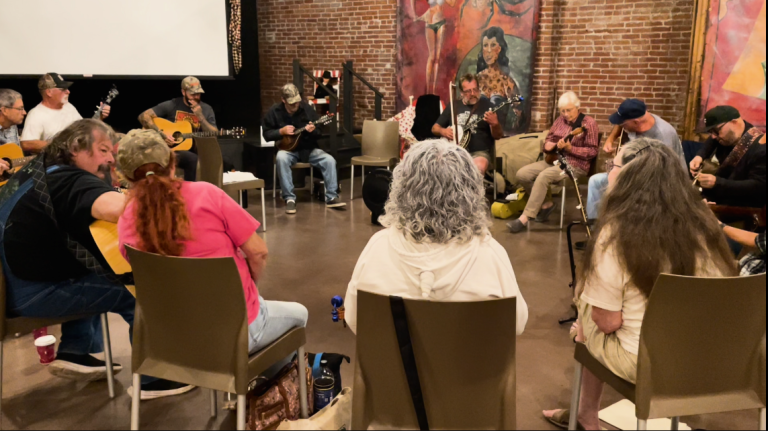 The gathering is open to all ages and skill levels, whether someone is picking for the first time, polishing their chops, or simply enjoys listening.
